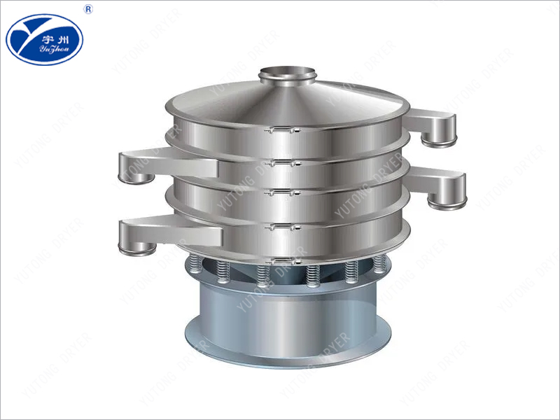 This machine consists of a hopper, an oscillation chamber, a coupling, and a motor. The oscillation chamber is composed of an eccentric wheel, rubber cushion, main shaft, bearings, etc. The adjustable eccentric heavy hammer is driven by a motor to reach the center line of the main shaft, generating centrifugal force in an unbalanced state, which changes the strength of the material and forms a track vortex inside the screen. The amplitude of the heavy hammer adjuster can be adjusted according to different materials and sieves.