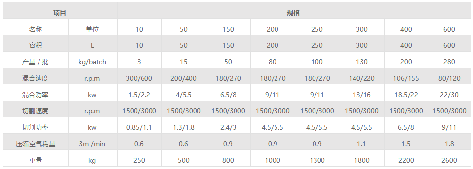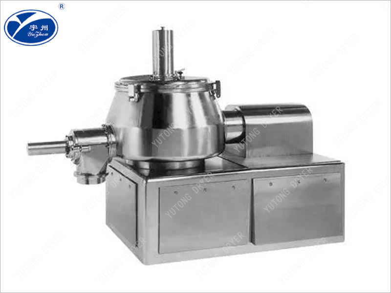 粉體物料與粘合劑在圓筒(錐形)形容器中,由底部混合漿充分混合成濕潤軟材,然后由側(cè)置的高速粉碎槳切割成均勻的濕顆粒。