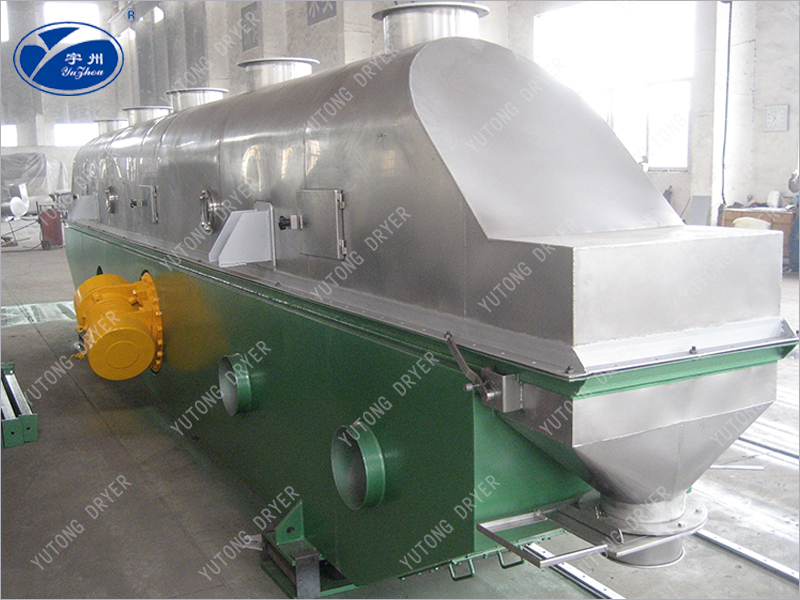 Материал поступает в машину из входного отверстия, и под действием вибрационной мощности материал непрерывно выбрасывается вперед в горизонтальном направлении. Горячий воздух проходит через псевдоожиженный слой и обменивается теплом с влажным материалом. Влажный воздух удаляется циклонным сепаратором и выводится из выпускного отверстия, в то время как сухой материал выбрасывается из выпускного отверстия.